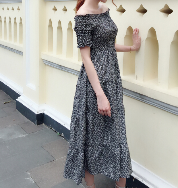 Qoo10 花柄ワンピース肩見せオフショルダーロング レディース服